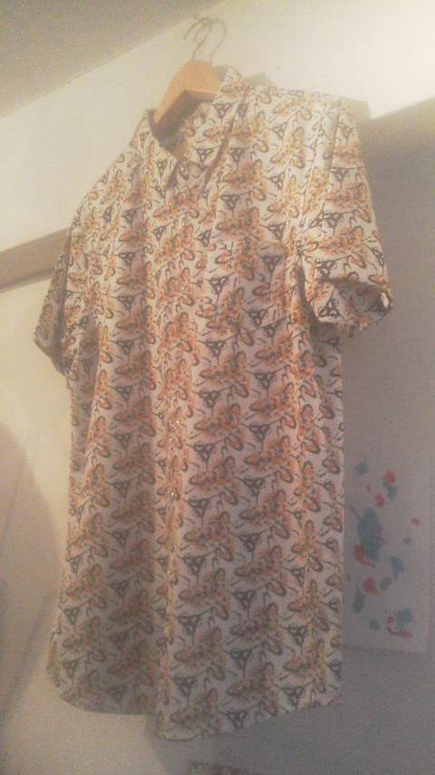 総柄ポリシャツ