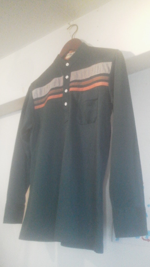 国産レトロ、ボーダー柄ハーフジップカットソー