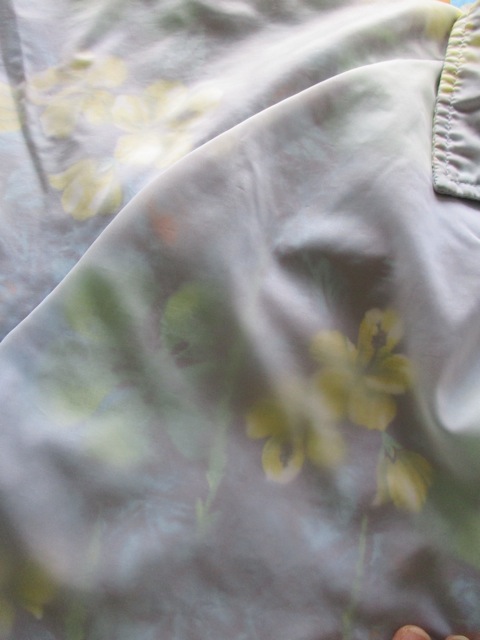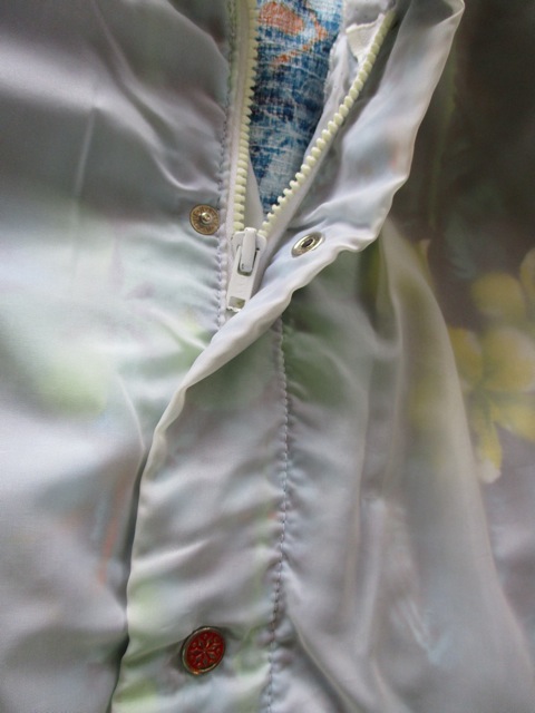 トロピカルな花柄のコットン地の上からナイロン生地を貼付けた一枚