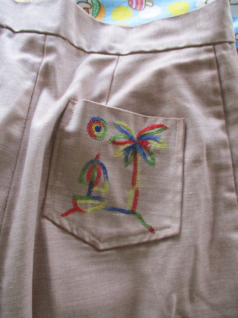 ヤシの木とヨットのカラフルな刺繍がエンドレスサマー感あり