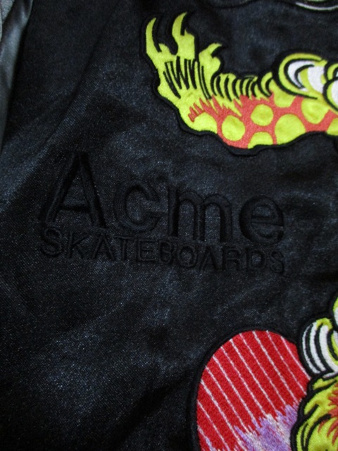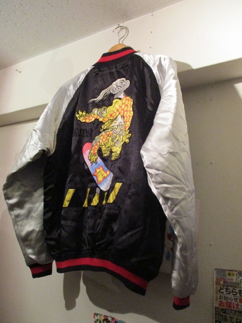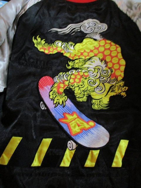 前面左胸に文字ロゴ、背面にはスケボーに乗る獅子が印象的なグラフィック