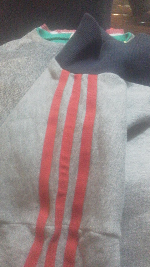 リブも紺色で、赤色で入ったスリーストライプスが格好良いです
