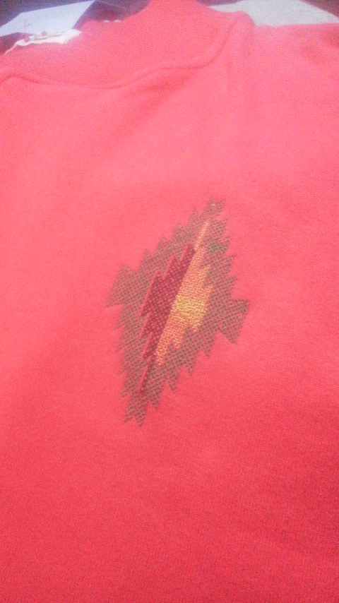 左右対称で胸元にチマヨな柄がプリントされたシブい一枚