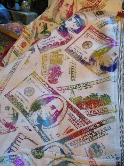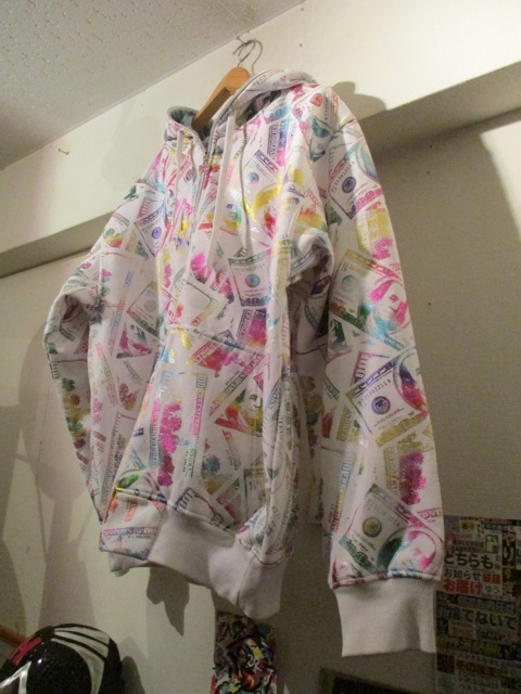 白地にグラデーションの利いたカラフルな100$札柄がインパクトある一枚