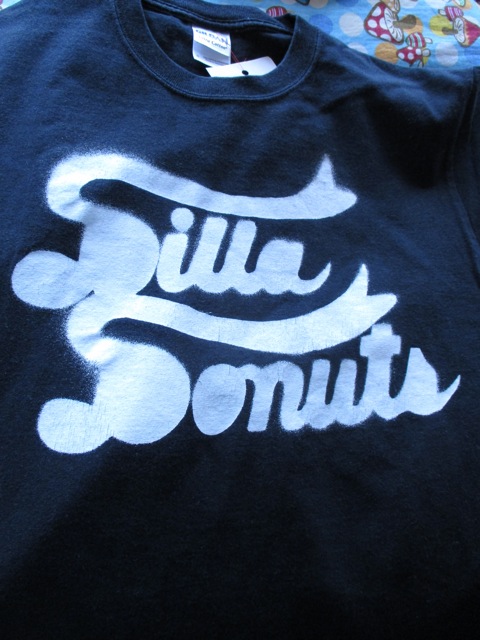 スリーブデザインにも使われている「Dilla Donuts」の文字がステンシル風にプリントされた一枚