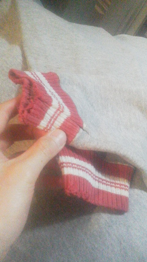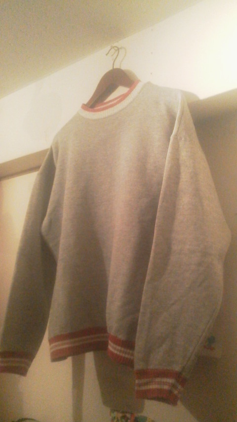 グレーボディに赤×白のラインの入ったリブラインスウェット