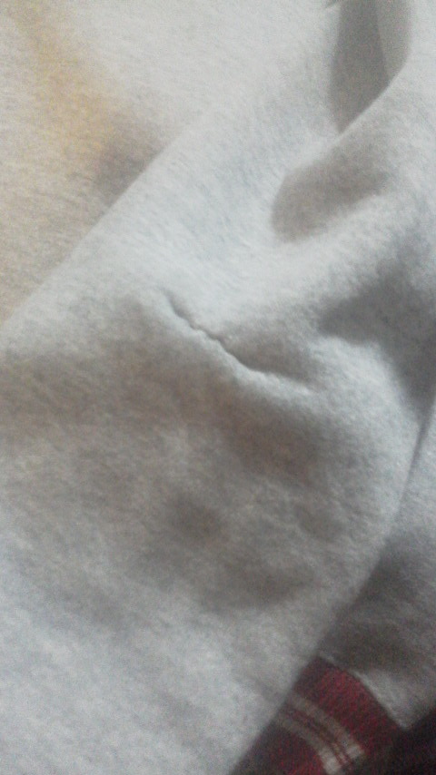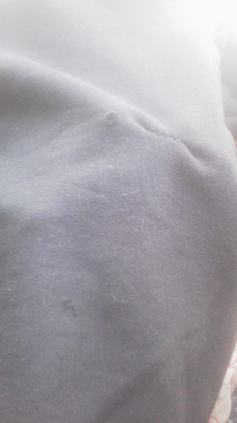 袖などもダメージありますが、アームにもつまんだ跡あり