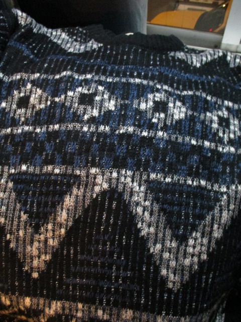 コチラもシブい配色のニットセーター