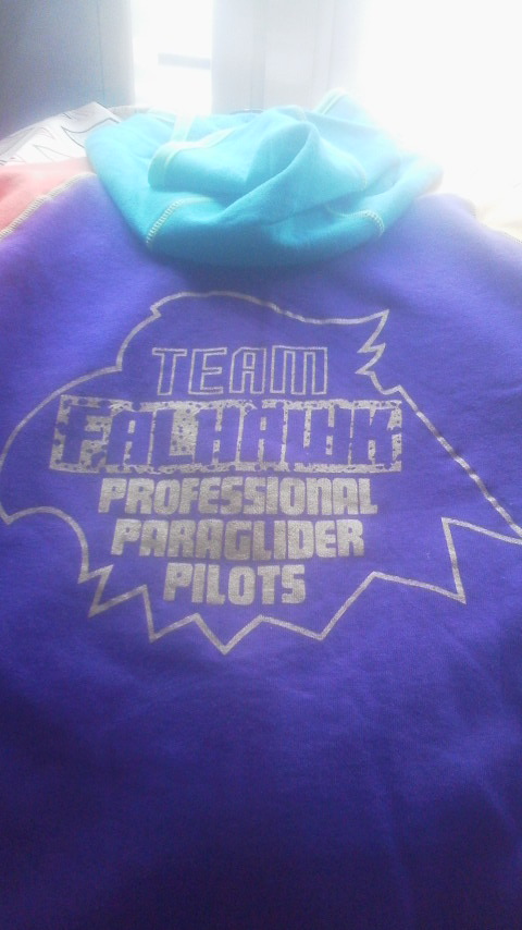 背面にゴールドカラーで入ったタカのシルエットと文字のプリント