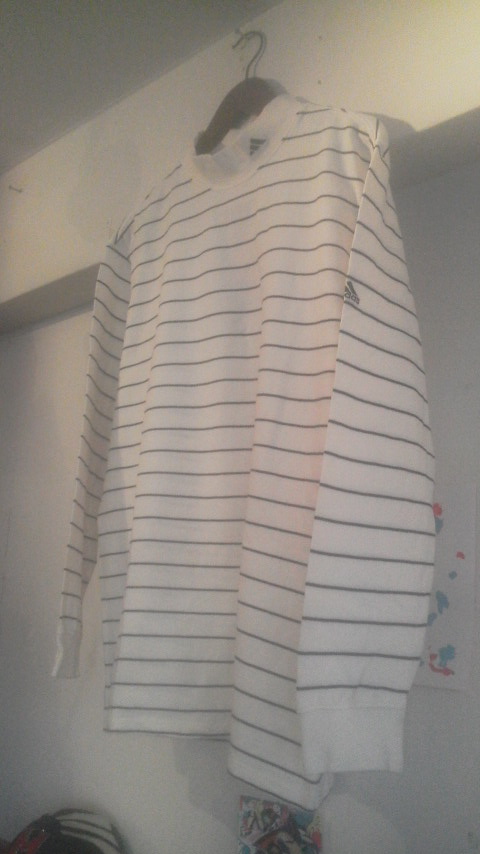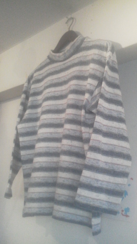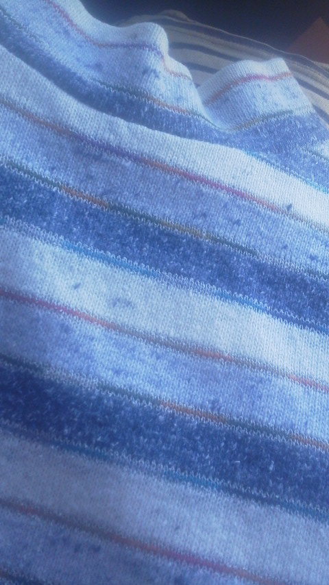 白×グレー×青のボーダー柄にカラフルなラインが印象的な一枚