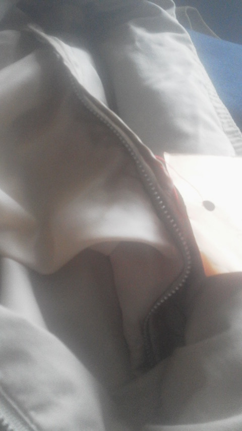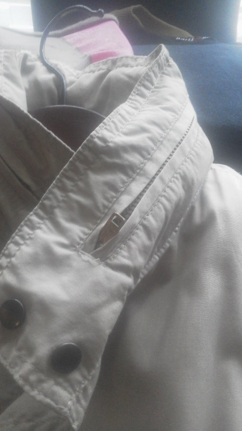 襟ジップ使用で、内側にフードが収納されたタイプ