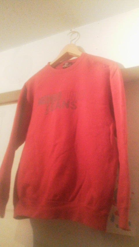 少し深みのある赤色ボディに黒プリント