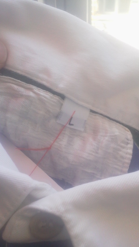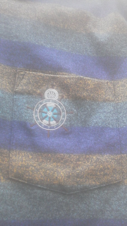 左胸にポケット付きで、その上に船の舵が刺繍されていてポイントに