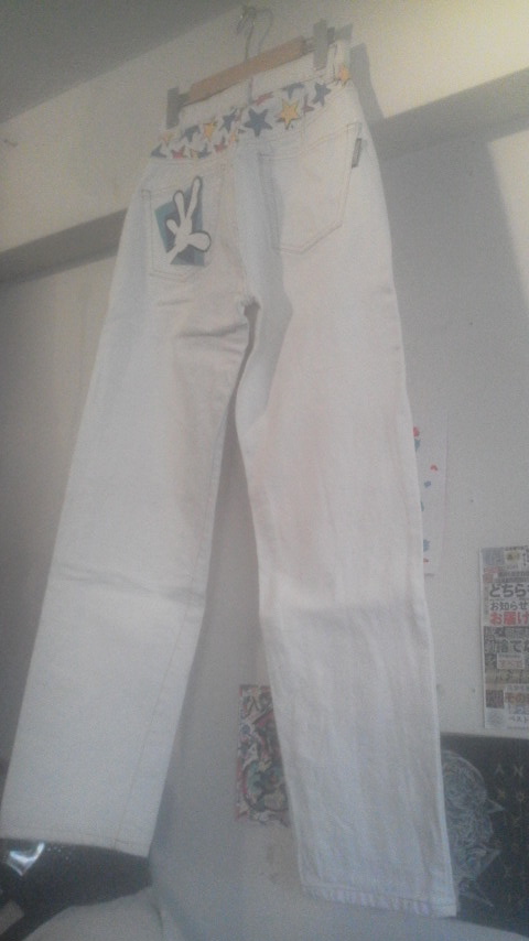 ホワイトジーンズにカラフルなミッキー&ミニーのペイント