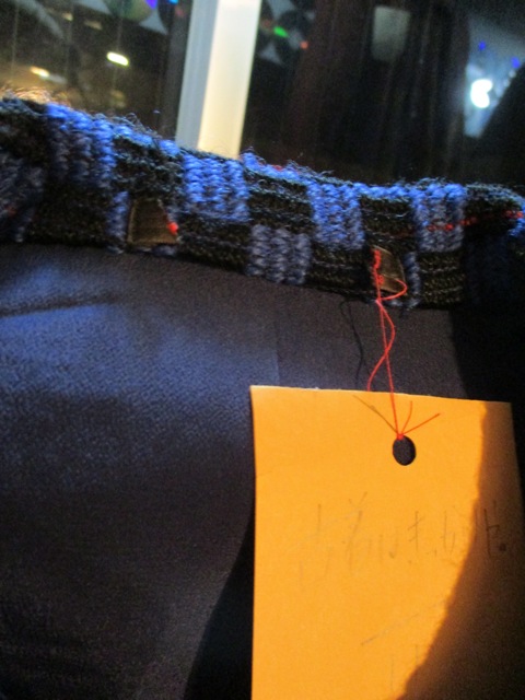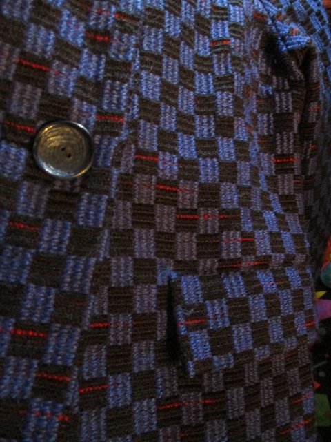 青×黒の市松模様に赤のラインが入った洒落た柄