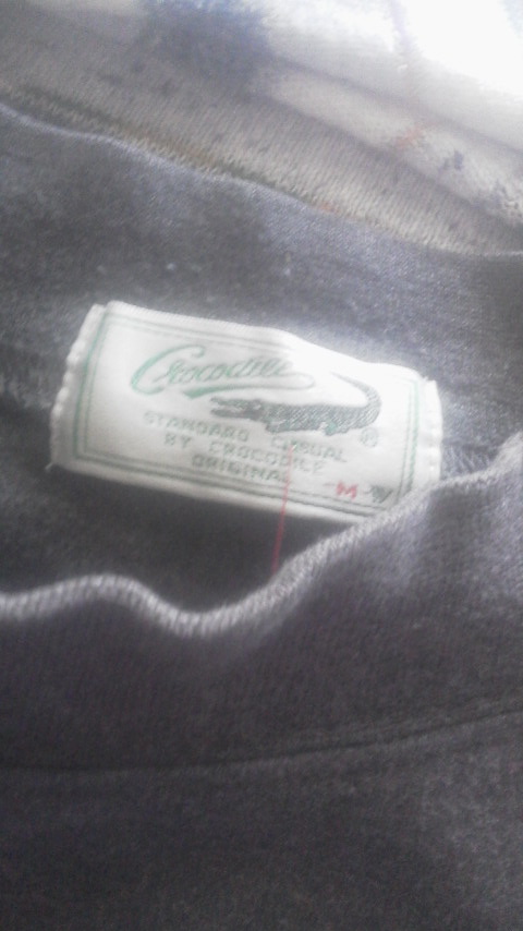 左胸にポケット付きで、その上にワニのワンポイントロゴ刺繍入り