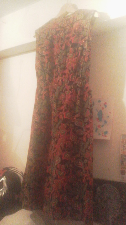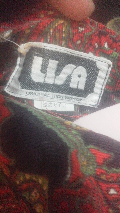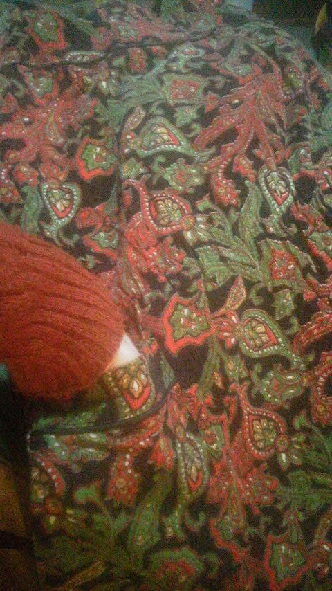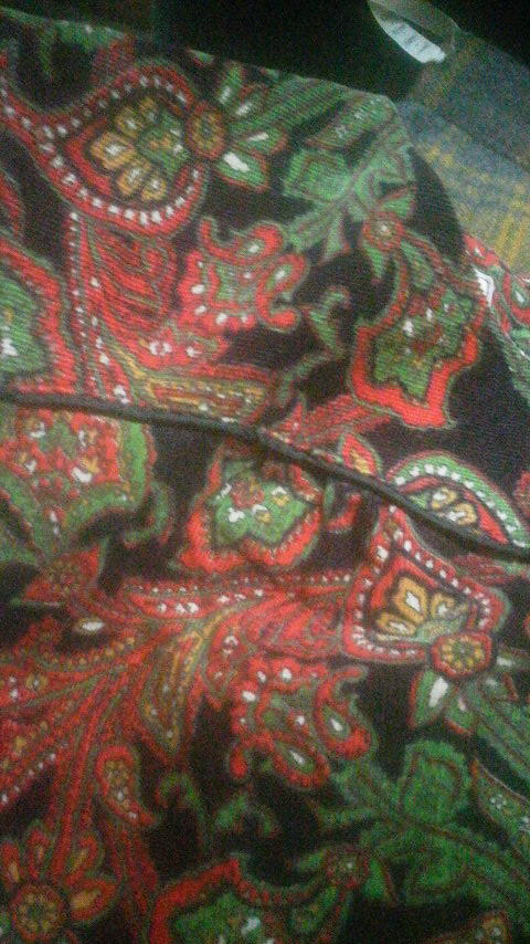 黒地に赤と緑が印象的で、少しサイケデリックな植物&ペイズリー柄