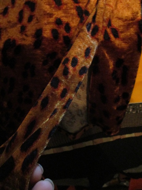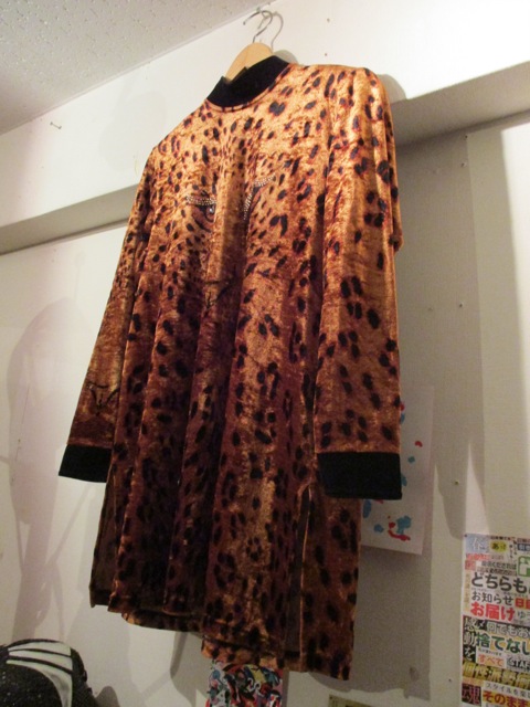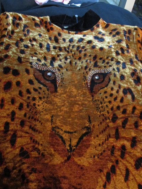 前面には顔も付いたヒョウ柄ベロアチュニック