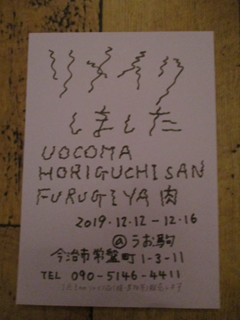 初日の12日は肉店主も うお駒さんにオジャマするつもりですので、近郊の方ならずともどうぞお立ち寄りください