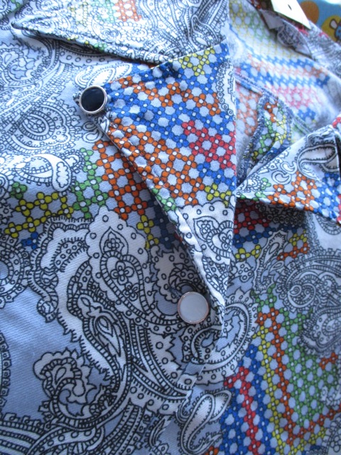 オープンカラーですが、襟部分にもスナップボタンが付いていて開きが抑えめに