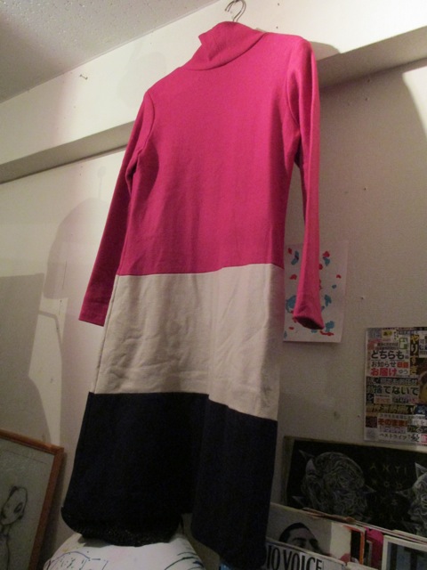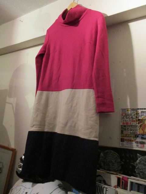 ボーダー切替ハイネックワンピース