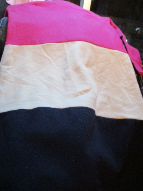 ピンク×白×紺の配色が目をひくボーダー切替ワンピ