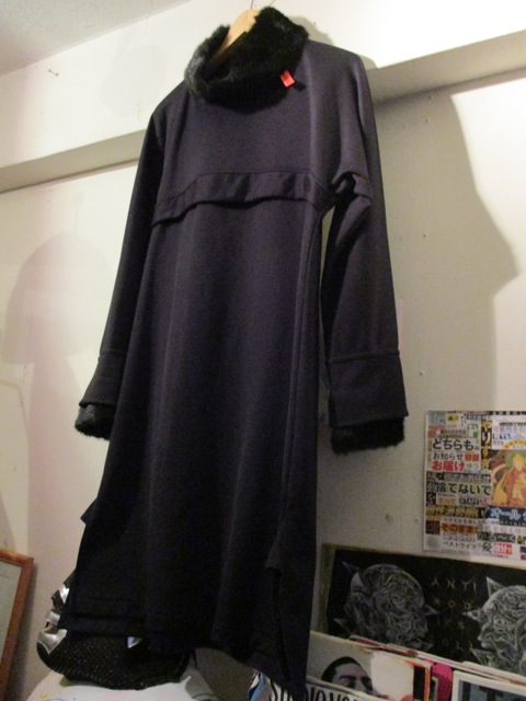 フェイクファーの襟と袖が暖かな黒色のワンピース