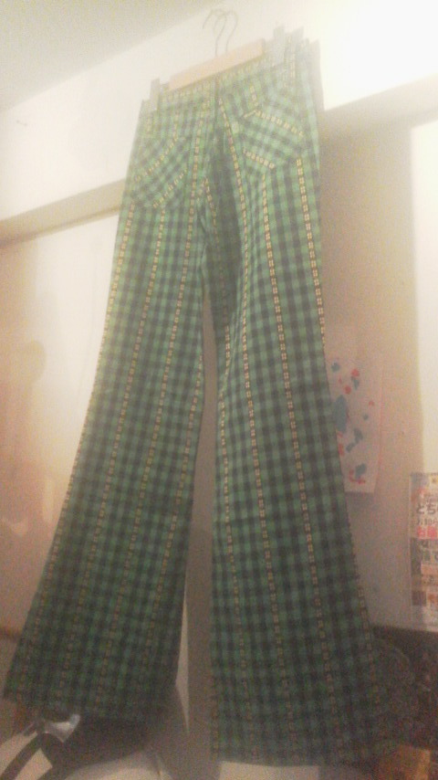 花刺繍&チェック柄フレアパンツ