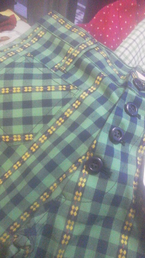目をひく鮮やかな緑×紺のチェック柄