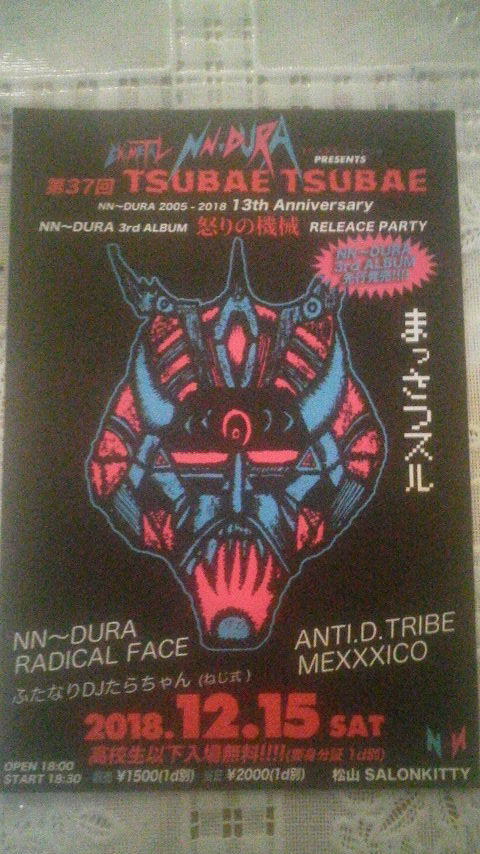 「第37回 TSUBAE TSUBAE NN〜DURA 2005-2018 13th Anniversary サードアルバム 怒りの機械 リリースパーティー」