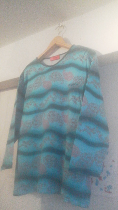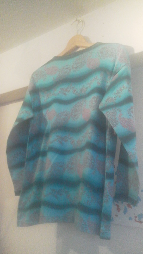 タイダイっぽいボーダー状の柄をベースにした花柄が素敵な一枚