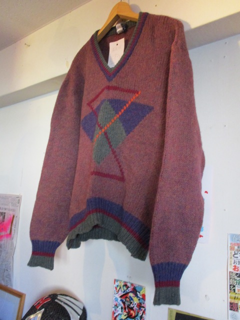 幾何学柄Vネックニット
