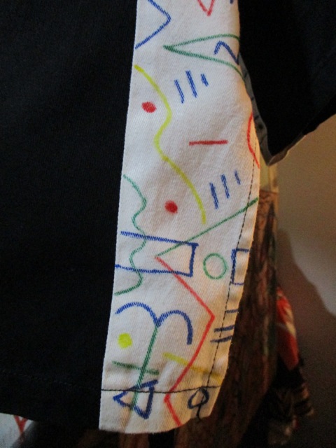 前面は黒地にクールな文字刺繍、前面以外は幻想的な総柄に