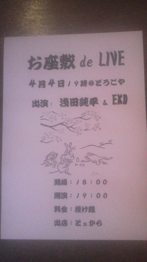4月4日(木)18時開場、19時開演 どうごやにて