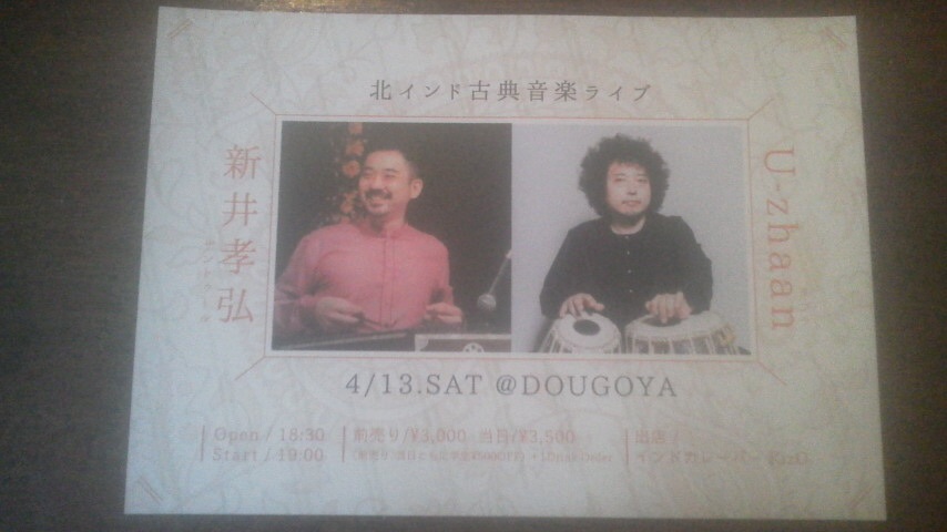 4月13日(土)18時半オープン、19時スタート どうごやにて