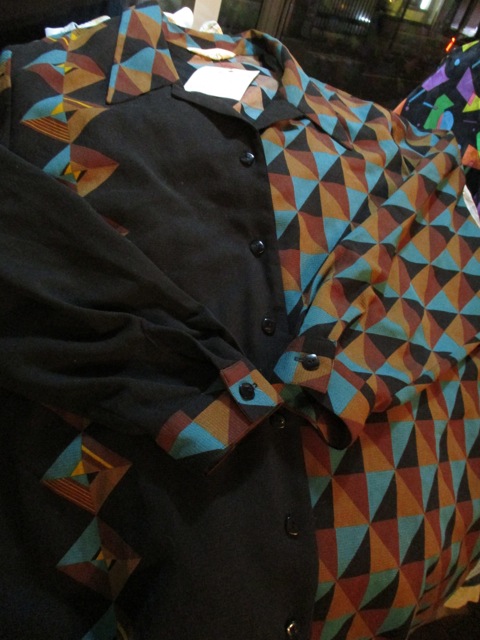 モダンな配色の幾何学柄と切替が洒落た一枚