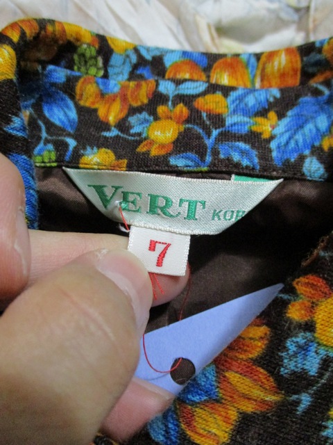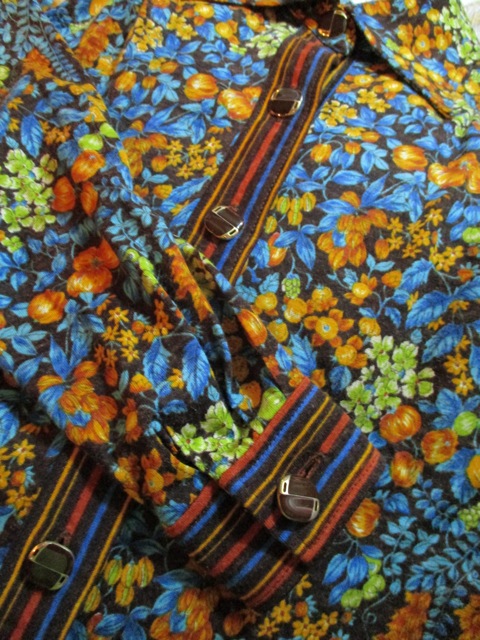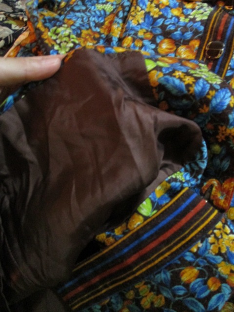 焦げ茶ベースにカラフルな配色の花柄が愛らしい一枚