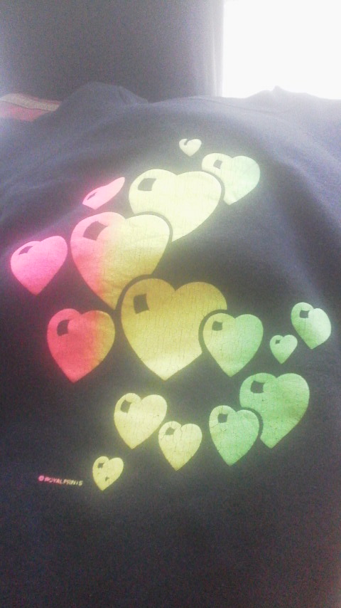 ピンク〜イエロー〜グリーンのグラデーションが目をひくハートプリント