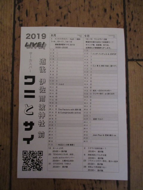 道後サーカスバー“ワニとサイ”さんの8月と9月のイベントスケジュールお預かりしてます