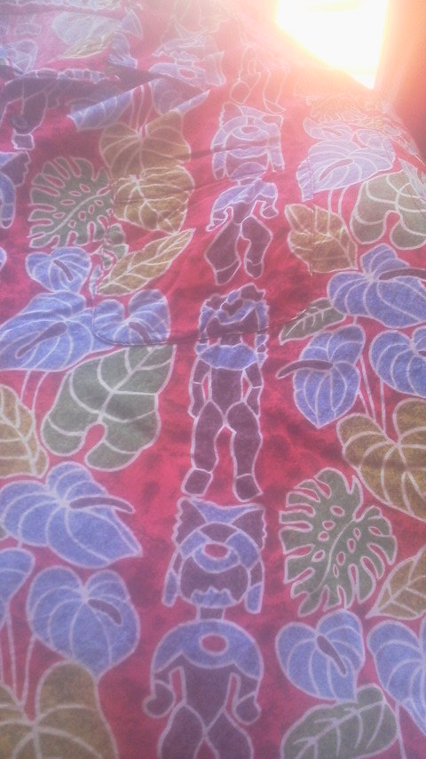ハイビスカスや葉っぱ柄に、ネイティブな人の柄が印象的
