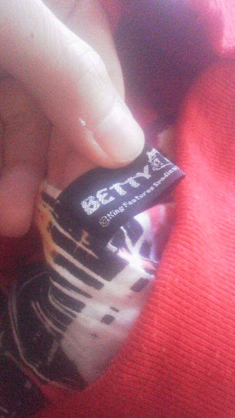 前面左胸にピンクで入ったベティのキュートな刺繍