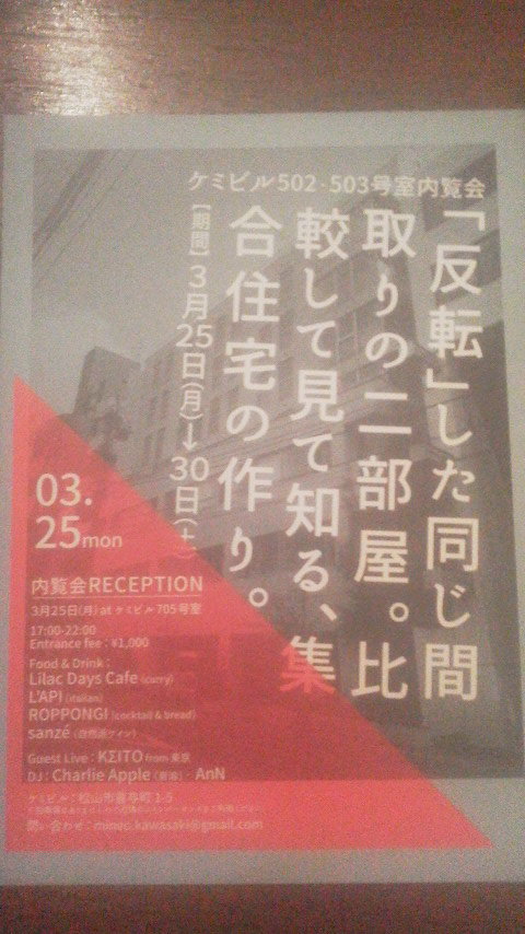 ケミビル502・503号室内覧会「『反転』した同じ間取りの二部屋。比較して見て知る、集合住宅の作り。」