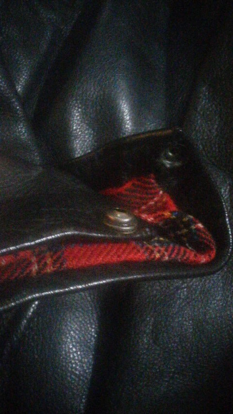 裏地に赤色ベースのタータンチェック柄、何となくロンドンぽさを感じます