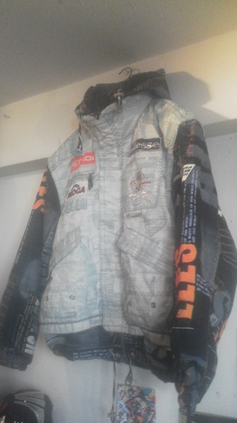コチラはジャケットのアームとフード部分の柄が前面にプリントされております