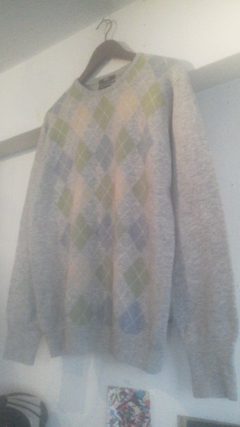 コチラはわりと落ち着いた配色ですが、やはりインパクトのある柄ニット