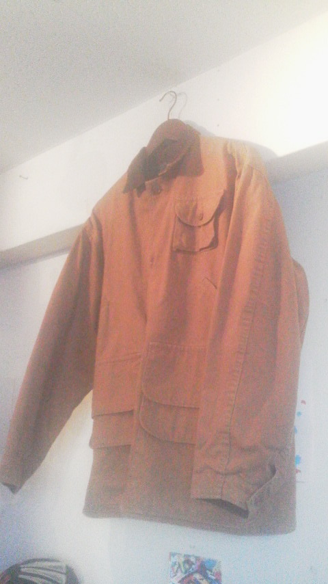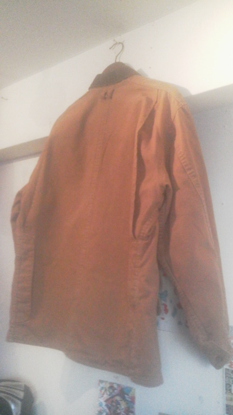 ダック地っぽい生地で、襟がコーデュロイになった一着