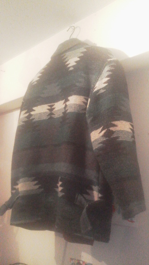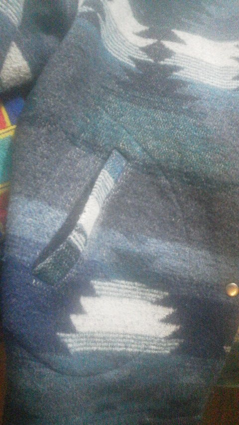 青系のネイティブ調の柄が印象的な一着