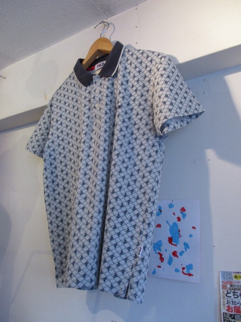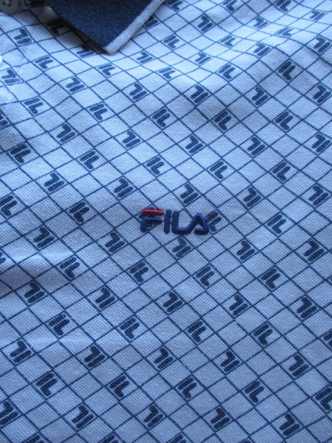 バイアス状の格子柄にFILAロゴがプリントされたユニークな一枚