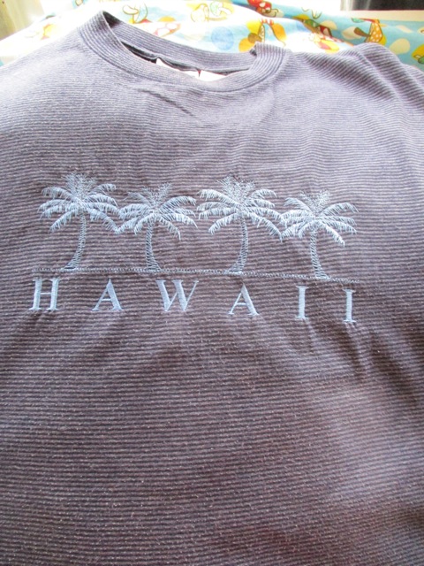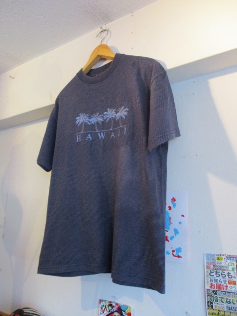 胸元に水色で刺繍されたヤシの木と「HAWAII」の文字が目をひく一枚