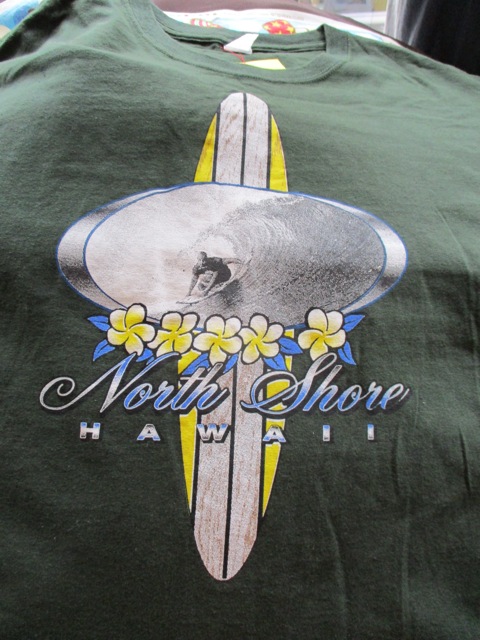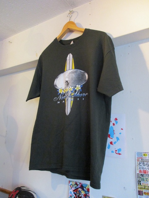 サーフボードにハイビスカス、サーファーフォトに「North Shore Hawaii」がデザイン的に組合わさったナイスプリント